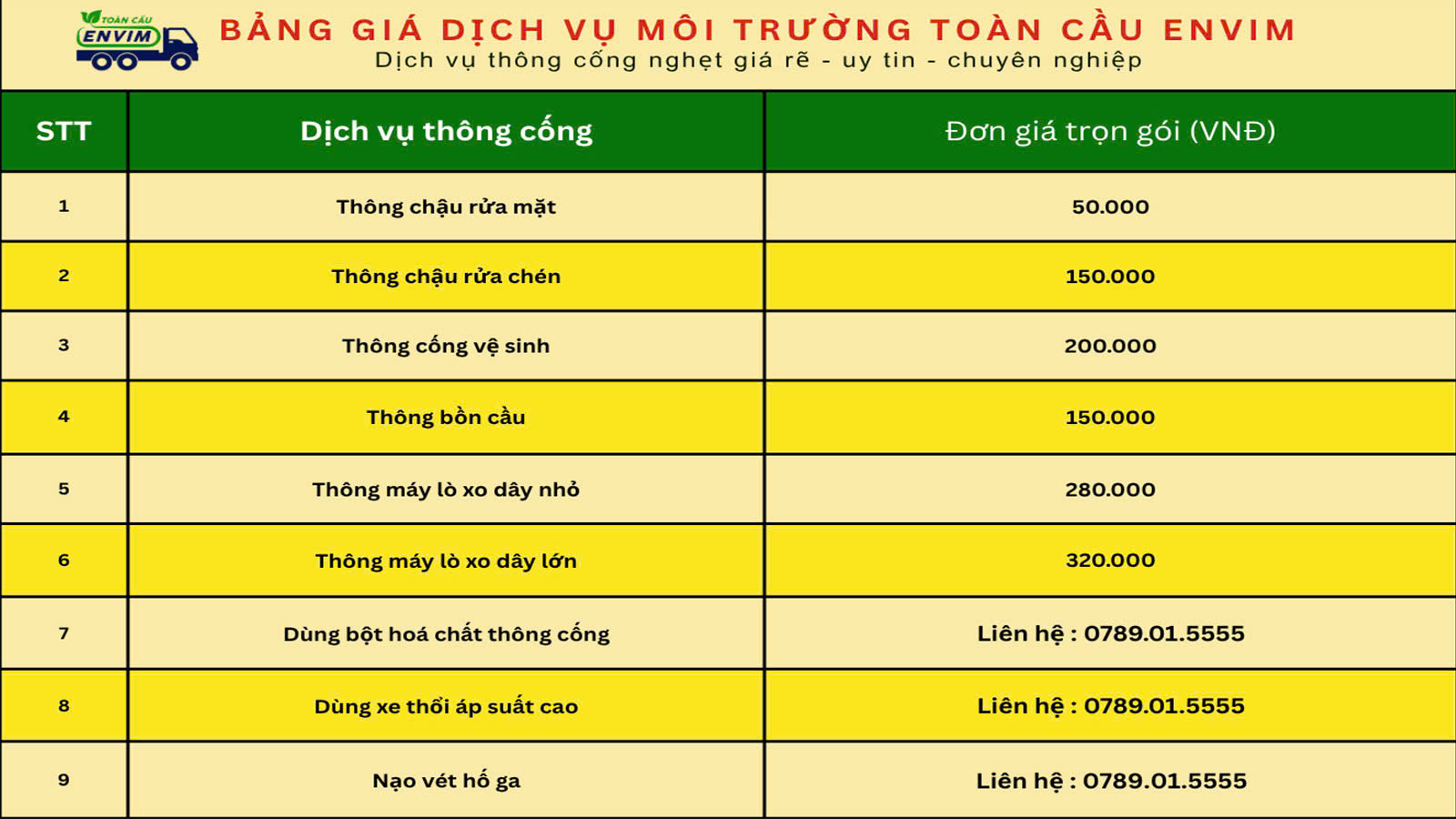 Toàn Cầu Envim mang đến giải pháp thông cống nghẹt toàn diện với cam kết: